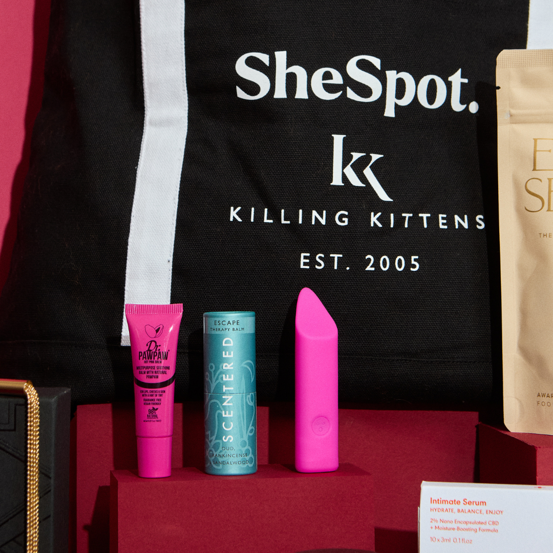 Packed with 20+ iconic products and worth over £600, this edit spotlights our favourite brands championing women, sensuality, and self-care - all beautifully packed in a custom SheSpot x Killing Kittens tote bag.